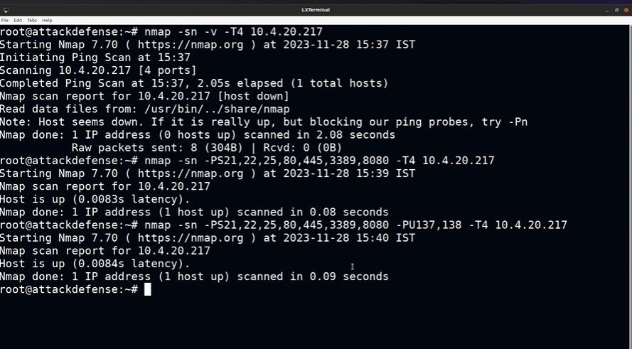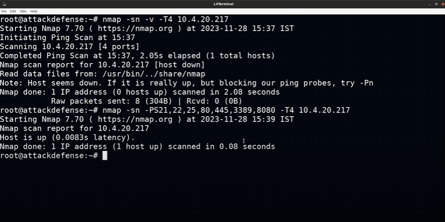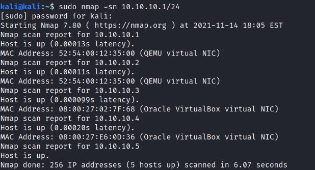 - -sn: Solo descubrimiento de hosts, sin escaneo de puertos