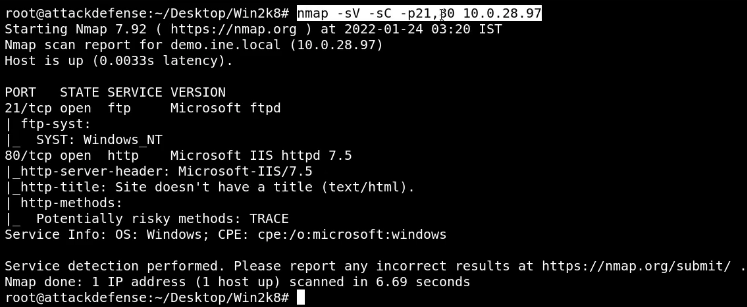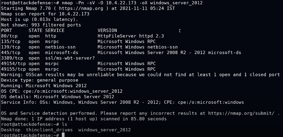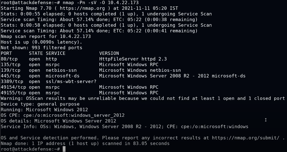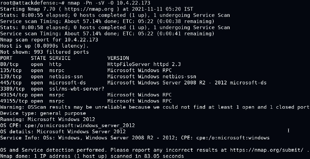 - -A: Escaneo agresivo (combina -sV, -O, -sC)