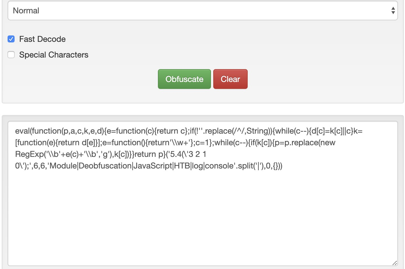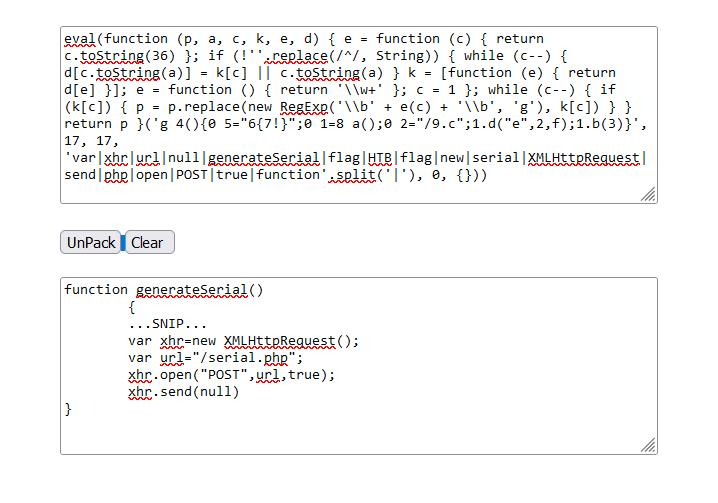 Podemos encontrar muchas herramientas online útiles para desofuscar código JavaScript y convertirlo en algo que podamos entender. Una buena herramienta es UnPacker.